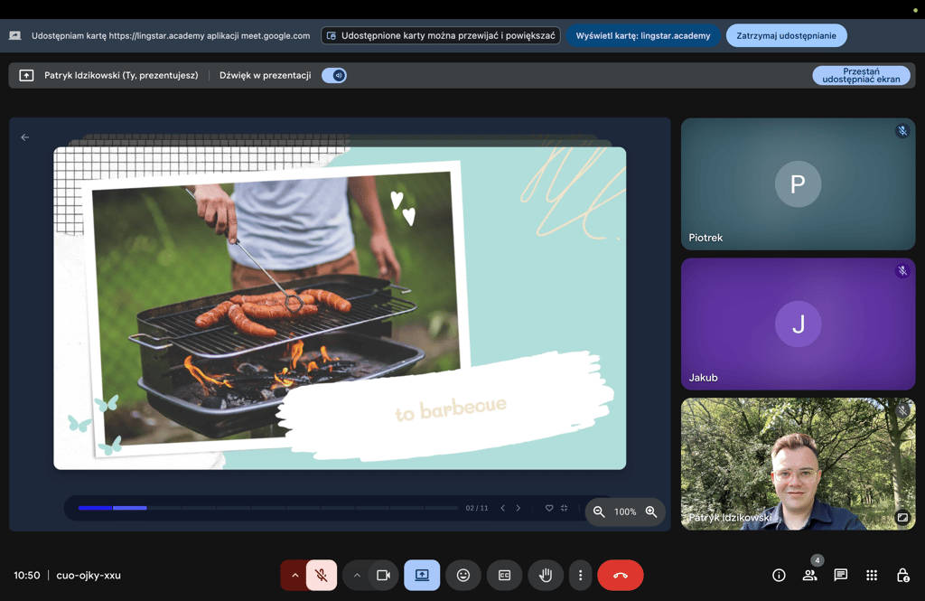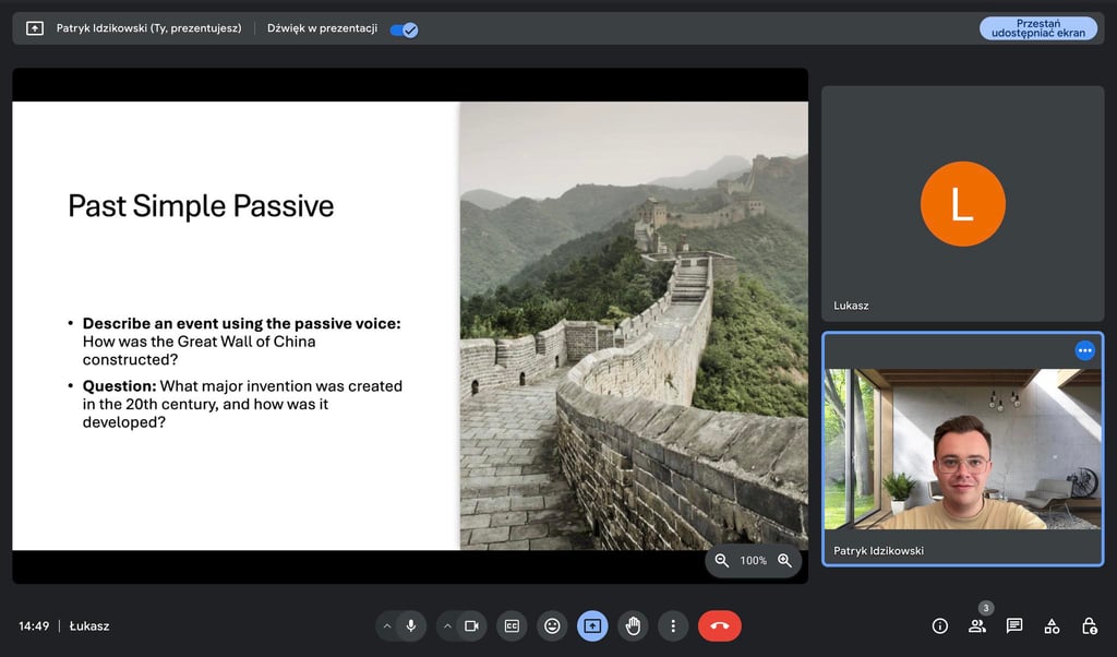 Podczas naszego pierwszego spotkania pogadamy o tym, jak mija Ci dzień. Zagramy w kalambury albo Taboo, żeby rozruszać język bez spiny. Postaramy się pomóc Ci oswoić się z mówieniem i pokazać, że potrafisz powiedzieć o wiele więcej, niż Ci się wydaje. Sprawdzimy, na jakim poziomie jest Twój angielski, powiemy, co już działa, a nad czym warto popracować. Porozmawiamy o Twoich celach, oczekiwaniach i tym, co Cię interesuje. Ustalimy też, jak mogłaby wyglądać nasza dalsza współpraca.